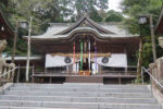 境内入口の拝殿に向かって左側に「イチイガシ」右側に「イヌマキ」の大木が対になっています。「イチイガシ」は中国地方では珍しい木だそうです。ただ、現在、「イチイガシ」は枯れてしまってました。「イヌマキ」の方は、年3回、木のお医者さんが診断や治療をしているらしく現在も元気に立っていました。