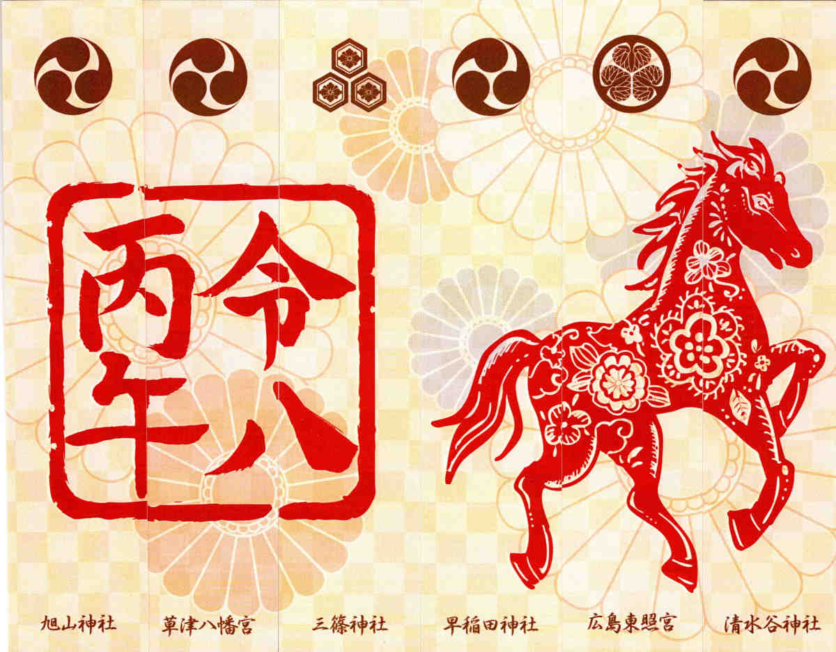 2025年のお正月に参拝してお正月と六社巡り限定の御朱印を頂いて来ました。開運の図は、早稲田神社、広島東照宮、清水谷神社、三篠神社、旭山神社、草津八幡宮の六社で細長いしおりのような帯を頂き揃えると完成します。