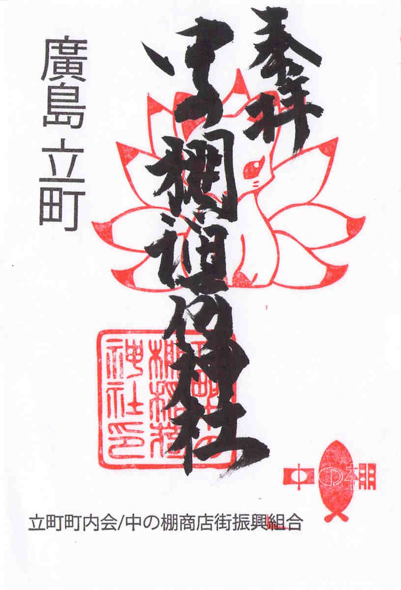 広島の中心街、八丁堀福屋の少し西側、電車通りから1本南側の道、中の棚商店街にある小さな神社です。