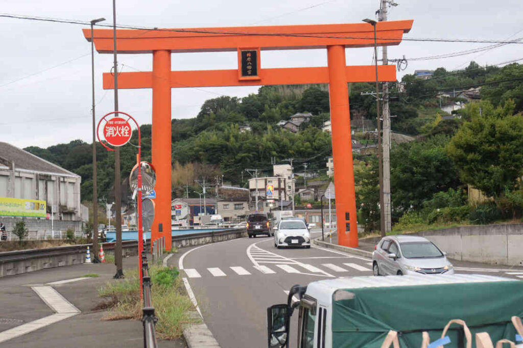 西大分駅からは、徒歩で柞原八幡宮へ向かいます。途中、神社や鳥居が点在していて、歩くと、1時間位かかります。