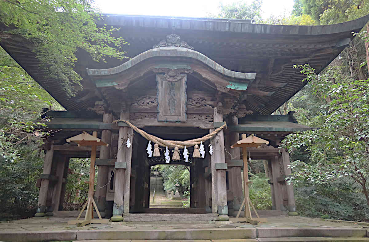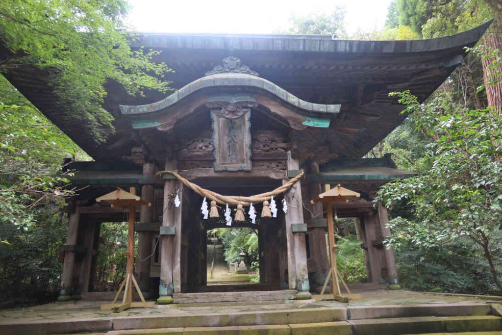 三の鳥居から社殿が立っている所までは、舗装はされてますが、急に狭く山の中を10分位歩く道になりました。(自動車の場合は、三の鳥居横から柞原八幡宮の表参道の方に行けます)