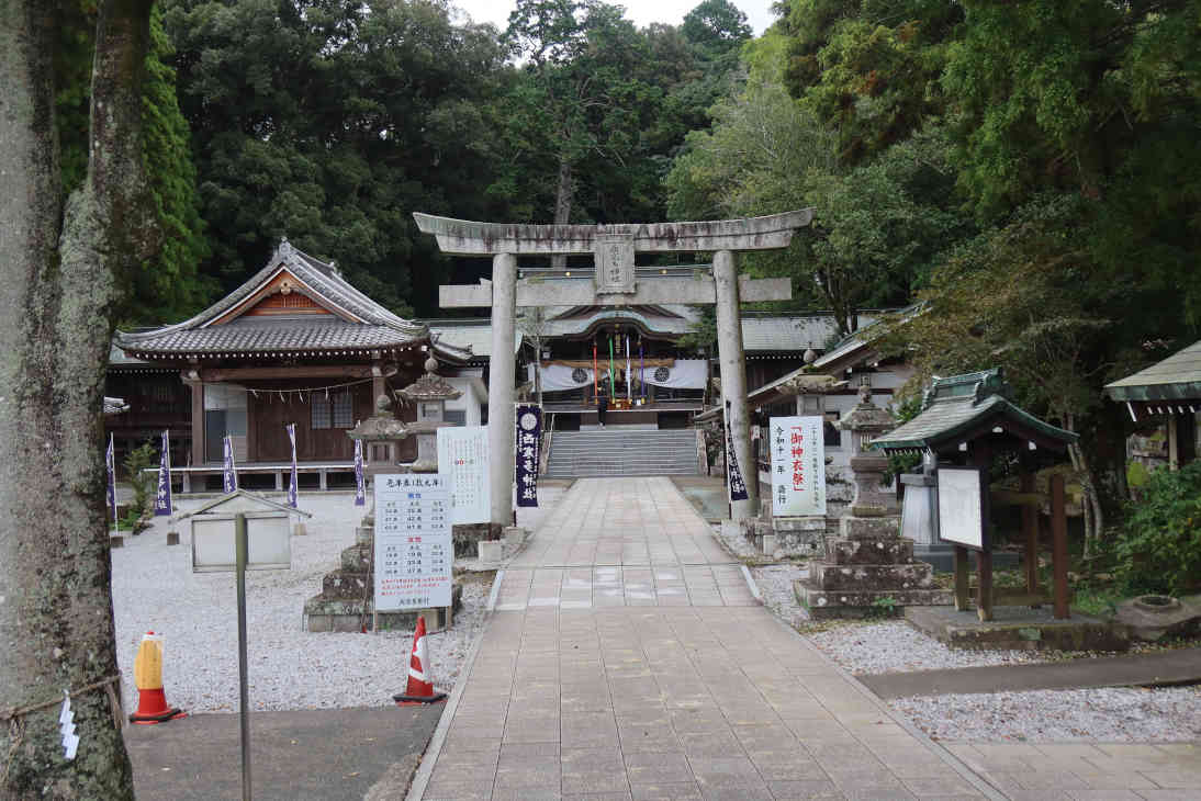 西大分駅からは、徒歩で柞原八幡宮へ向かいます。途中、神社や鳥居が点在していて、歩くと、1時間位かかります。