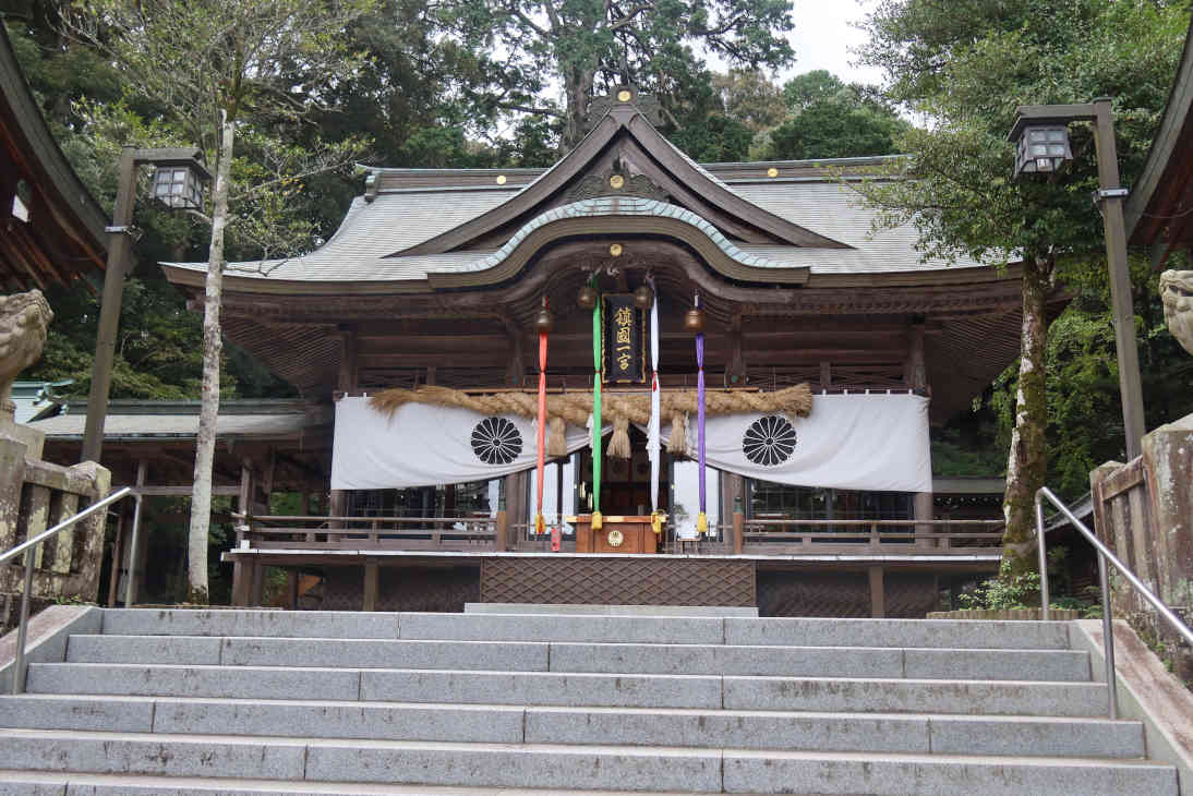 拝殿から渡り廊下みたいに拝殿前の廻廊まで繋がっていて、拝殿の正面に立つ場所が無く「何処からお参りすればいいんだ(?_‽)」状態でした。授与所で御朱印をお願いした後、聞いてみたら、拝殿前にある廻廊に靴を脱いで上がって真ん中辺りまで行くと拝殿の正面に立てて参拝できるとの事でした。立派な廻廊で、上がって良いとは思いませんでした。3段だったか?階段上がって、廻廊を真ん中位まで行くと、赤い絨毯が敷かれお賽銭箱があったので、此処で参拝させて頂きました。