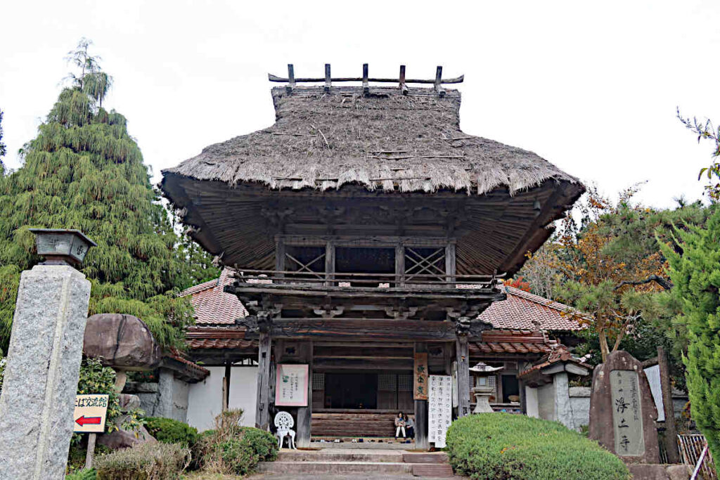 まずは、元和年間(1615年から1624年)に建立されたと言われている茅葺屋根の珍しい山門がお出向かえ。山門の正面が本堂で、参加者は本堂で御住職の節談説教(ふしだんせっきょう)を聞き、後について読経しました。