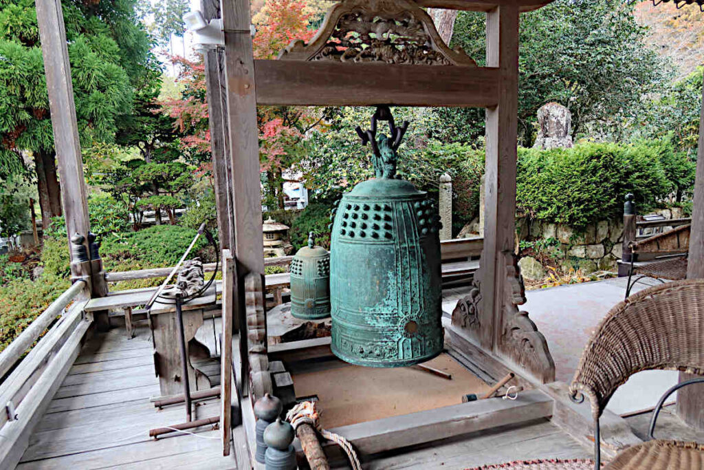 戦争の時に金属類回収令で提出された鐘がそのままの姿で返還されて来て今は「平和を希うつり鐘」として、本堂の左側に置かれて自由に打てるようになっていました。