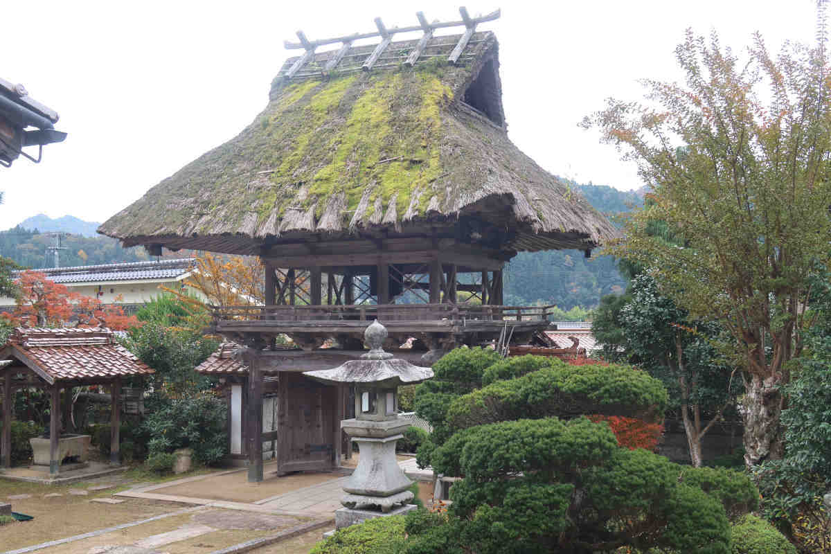 まずは、元和年間(1615年から1624年)に建立されたと言われている茅葺屋根の珍しい山門がお出向かえ。山門の正面が本堂で、参加者は本堂で御住職の節談説教(ふしだんせっきょう)を聞き、後について読経しました。