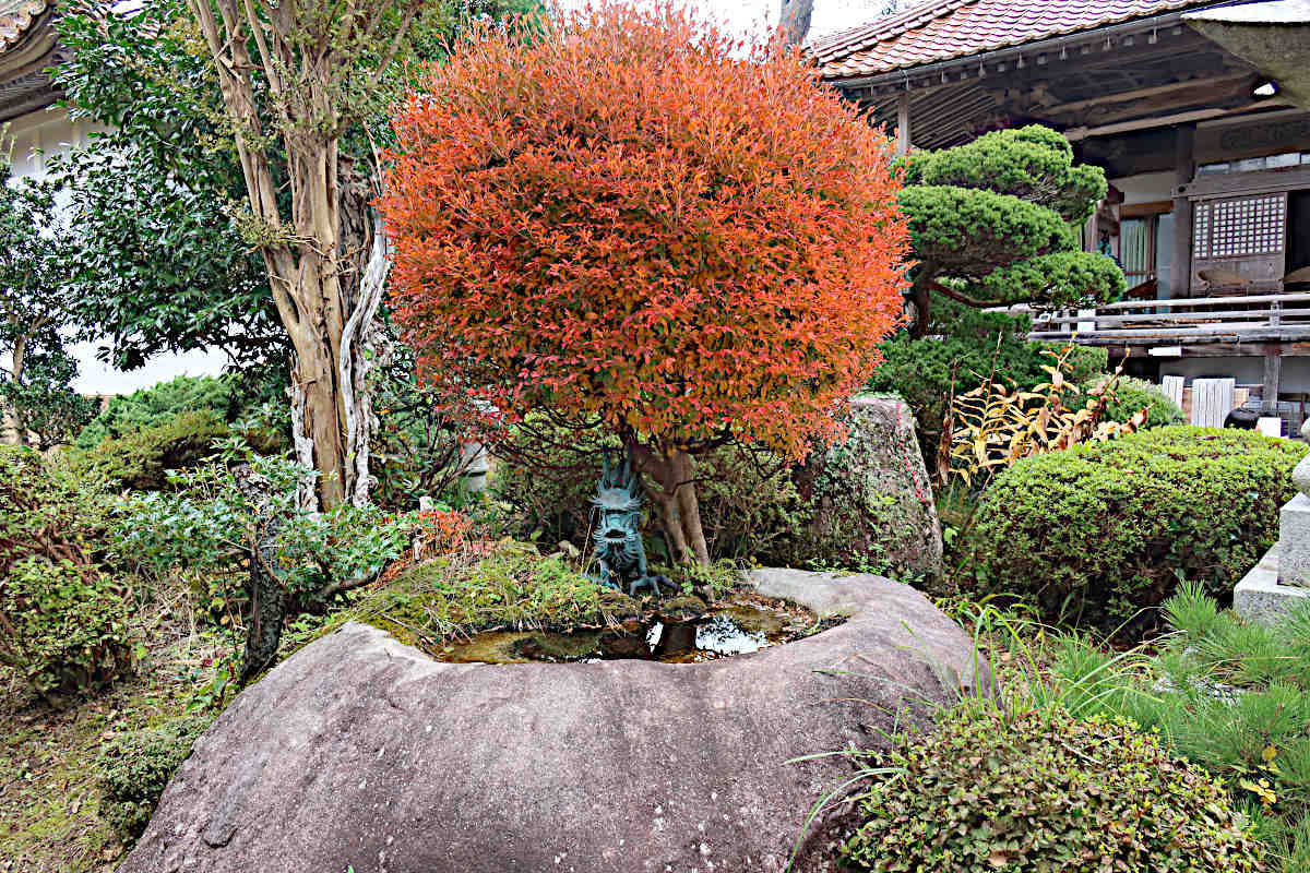 その後は「オタスケ衆」と言う事で、本堂や境内のお掃除のお手伝いを行いました。私は、主に山門周辺で落ち葉の掃除をしてました。途中、休憩でお茶やお菓子を頂いた時、ふと見ると、木の陰に何かの像を発見。近づいてみると竿を持っていたので恵比須様の石像のようでした。奥様によると「先代のご住職がこういった像とかを境内のあっちこっちに配置するのが好きだった」と言われてました。