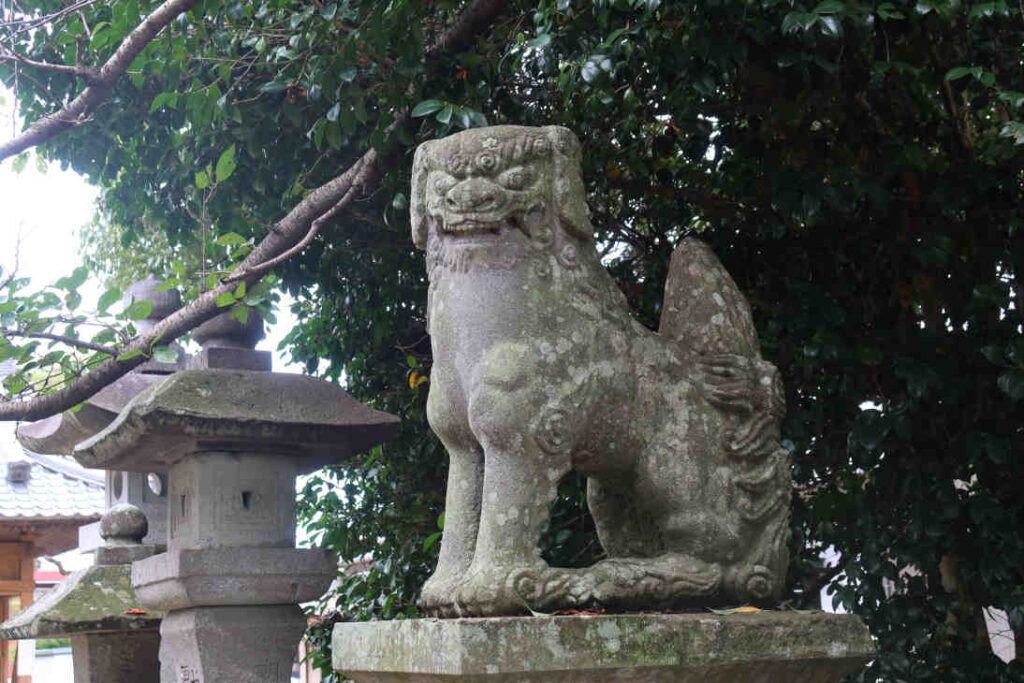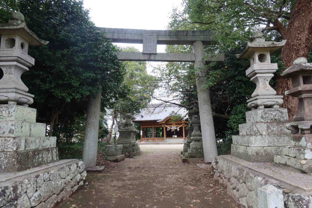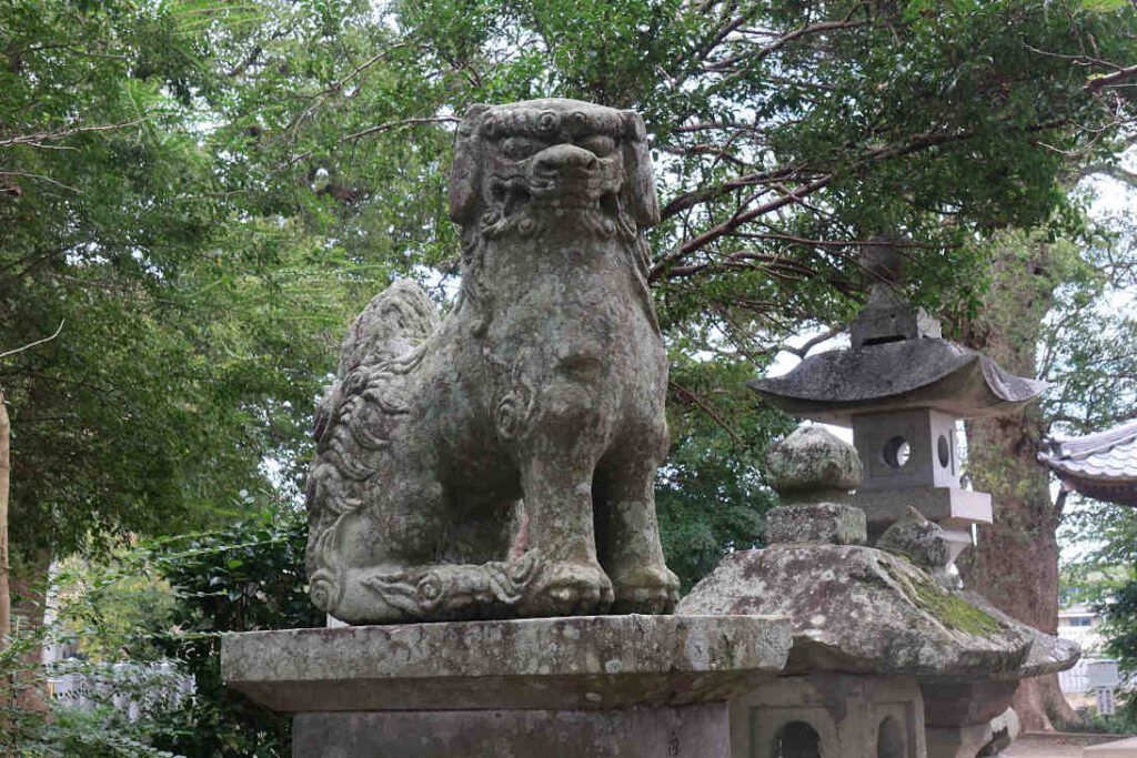 国道10号線と大分県道44号線が交わる辺りにたっていますが、入り口の鳥居の辺りは木々に囲まれているので、神社の入り口とは分かり難いかもしれません。鳥居を抜けると視野が開けます。両方、吽型か?に見えた、口の開きが控えめな狛犬の前を通ると正面に拝殿がありました。