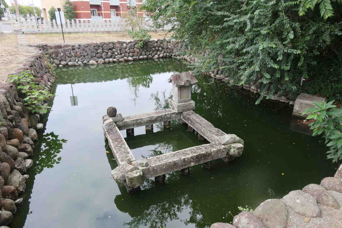 北辰殿の左側、大分県道44号線に沿った辺りに宝池がありました。「社殿の傍らの霊水で酒を造って八幡神に献じ、その残滴を地に注いだところ、泉になって湧き出したという伝説から、この場所に池を掘ったのが起源であろう」との説明がありました。