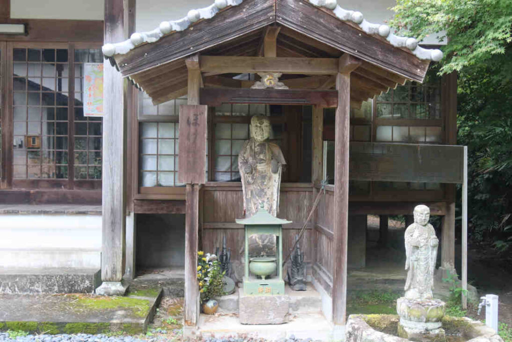 本堂の右前には「ボケ地蔵」と水の上にもう1体お地蔵さまがたっていました。