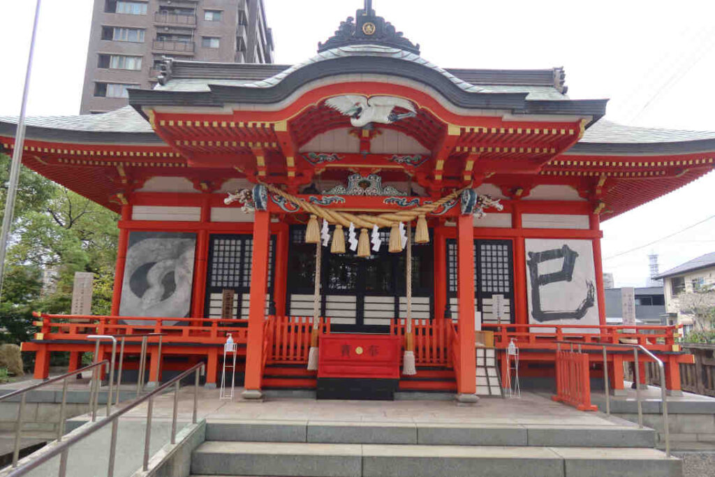 拝殿は鮮やかな朱塗りの建物で左側に干支の絵、右側には干支の字が書かれていて、毎年更新されているようです。