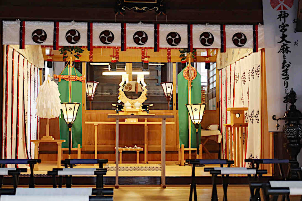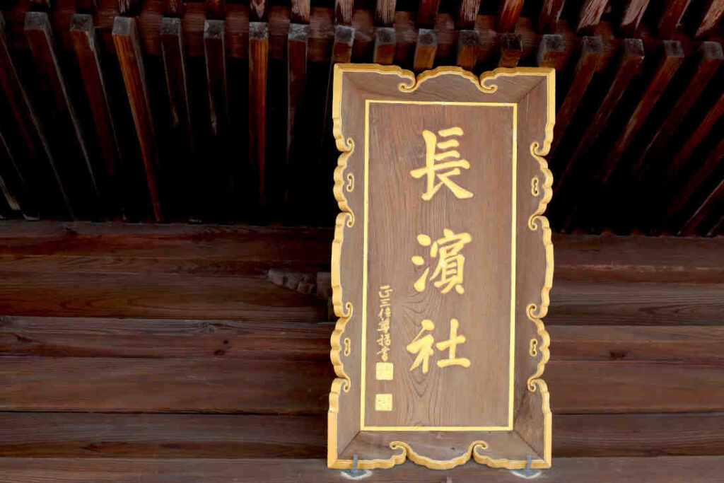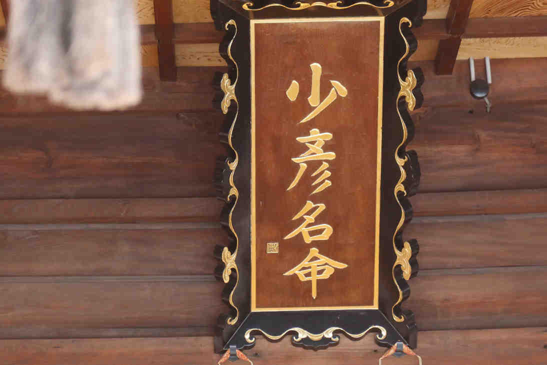 拝殿前には「長濱社」の扁額、内側には御祭神の「少彦名命」と書かれた扁額が掲げられていました。