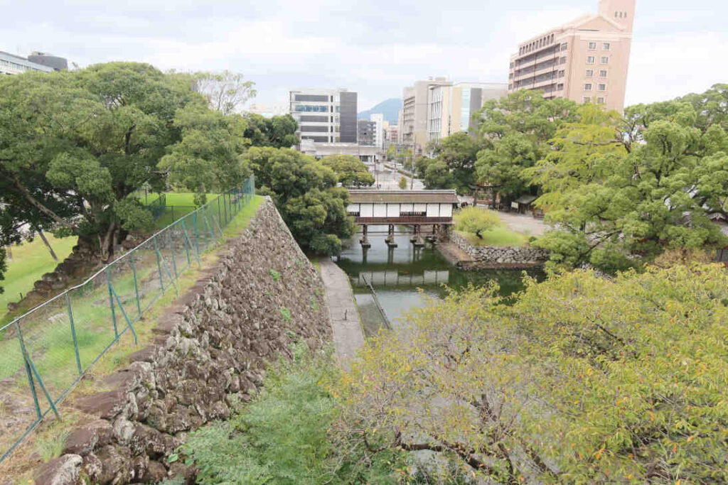 石垣やお堀は、最初は、2日前に西寒田神社から大分駅に戻る時のバスの中から見えてました。改めて徒歩で近くに行ってみるとまた一段と綺麗なお堀、石垣、櫓でした。南側の大手門に向かい中に何があるのか、わくわくしてましたが、1歩中に入ると中は殺伐とした無機質な工事現場(何の工事?)&駐車場。外見とは全く違った印象でした。天守台も只の高台で確かに景色は良いけど、かなりがっかりしました。騒音も煩く、写真撮ったら、早々に北側の廊下橋から脱出しました(^_^;)