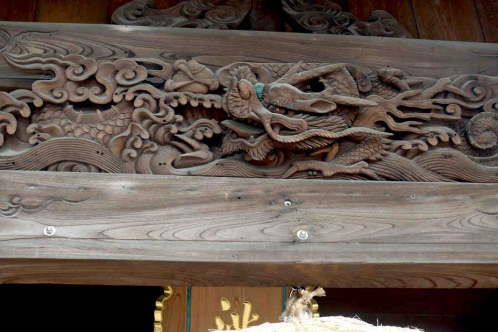 拝殿の左右に大きな絵馬が掲げられていて、大体が干支か梅の花などの絵のようです。今回2025年巳年なので、左側は白蛇でしたが、右側は?(木の根? タコ? 見た角度が悪かったみたいです^^;)