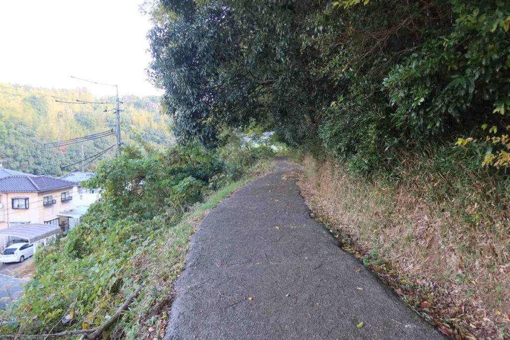 最初に地図を見た時、どこが正式なルートか判断できず、色々と調べましたが、確かな情報が無かったので、最初はナビ通り行ってみてダメ、後は、山の麓を一周しながら道を探し、南側の正福寺の北東部辺りの道を見つけました。途中、案内等はありませんでした。