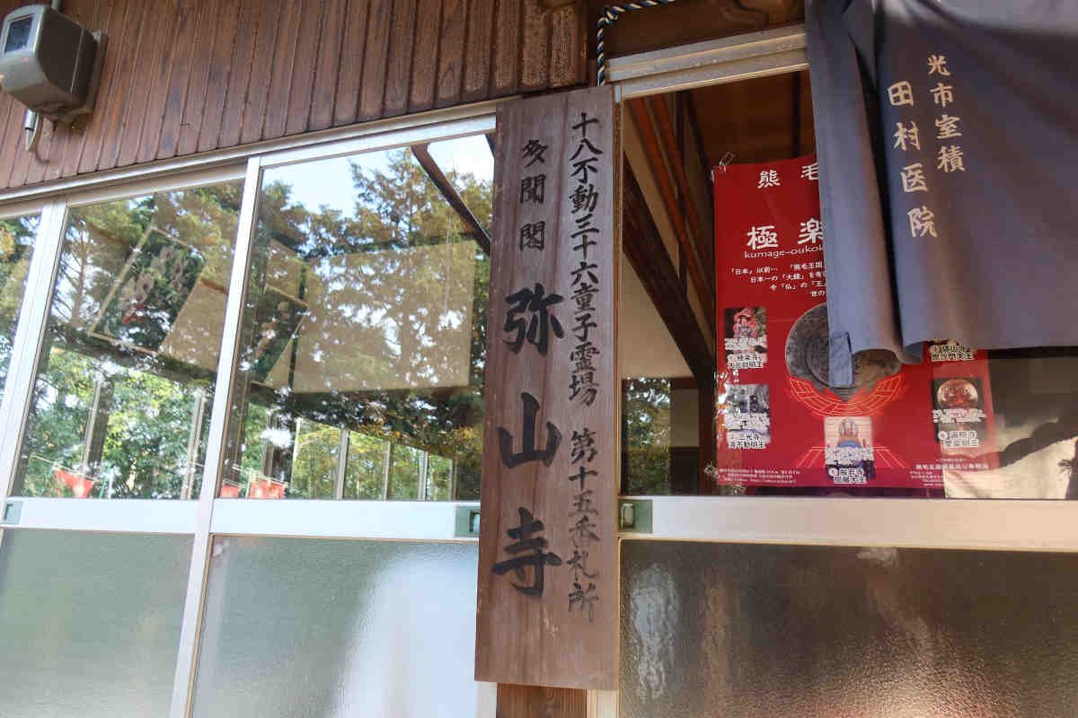 石段を登って行くと途中「彌山權現」と書かれた扁額を掲げた石鳥居がたっていました。本堂前には狛犬。吽型はちょっと特徴的で、半分木々の中に埋もれてて悔しくて?歯を食いしばっている感じでした。参道途中に鳥居、本堂前に狛犬、まさに神仏習合ですね。