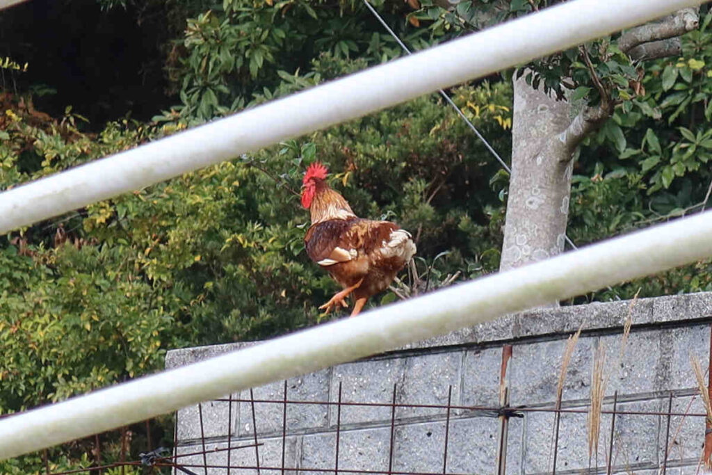 お寺とは関係ないですが、参拝後、境内から出てすぐ位にニワトリの鳴き声がしたので、何処にいるのか探していると、住宅の塀の上を自由に歩き回っているニワトリがいました。繋がれている訳でも無く外に逃げるでも無く、塀の上を器用に散歩しながら、気持ちよく鳴いているようでした(^_^)