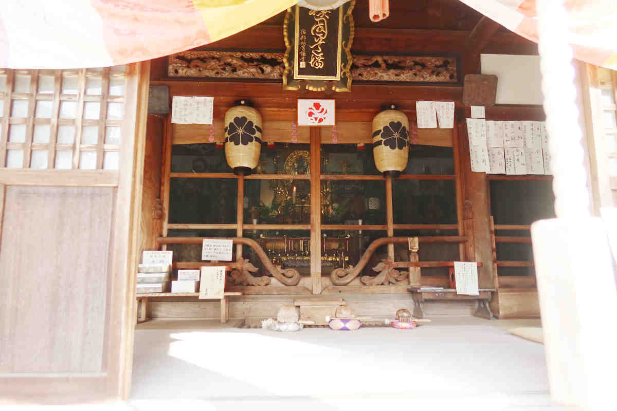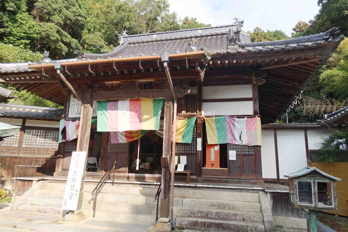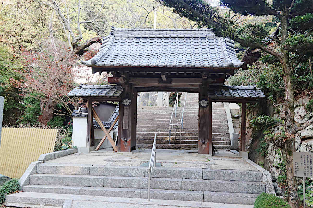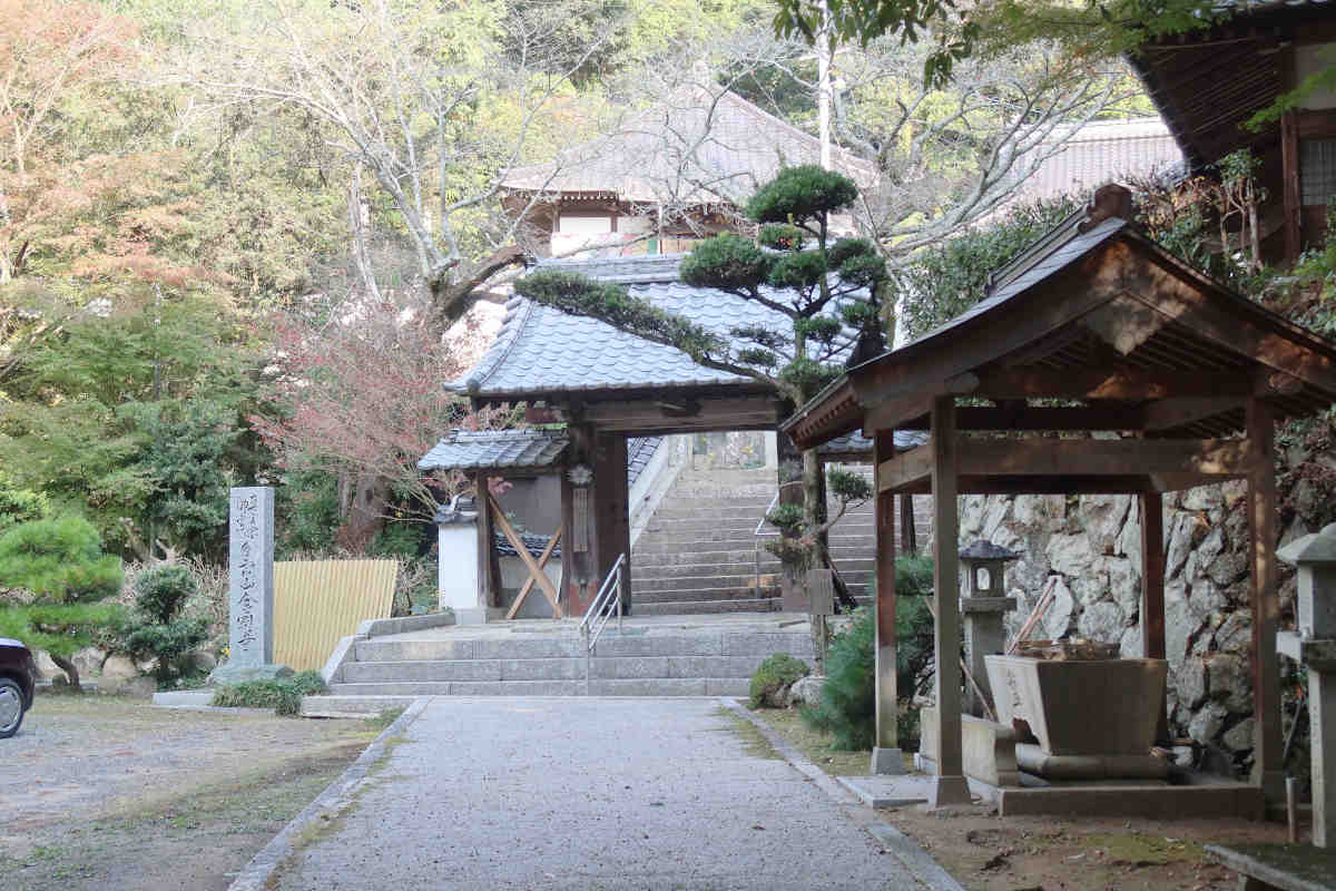 柳井駅から30分位ですが、町並みからは少し離れた山の麓にありました。湘江庵からは緩やかな登坂で、入口辺りからは、石段が続きます。手水舎、寺標、山門と続き、更に石段を登って行くと右手に大師堂、もう少し上まで登ると正面に最初は本堂かと思いましたが、釈迦堂がたっていました。釈迦堂の中からは読経の声が聞こえていたのでお勤め中かと思いましたが、中に人はいなくて、どうも録音されたもののようでした。