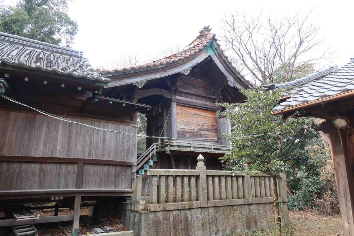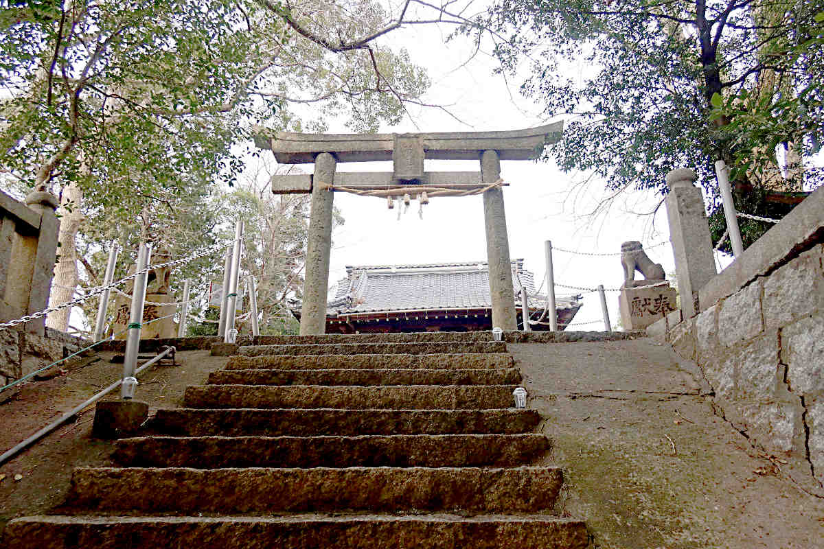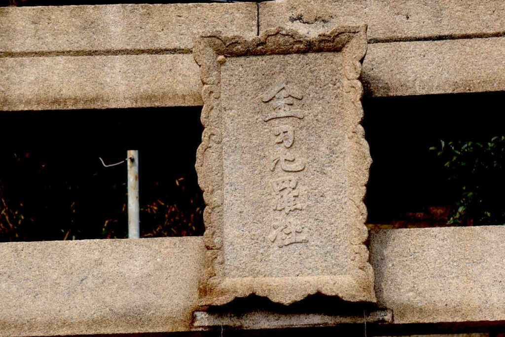 裏に回ると本殿の右側の方にもう一つ背の低い石鳥居がありました。恐らく「金刀比羅宮」と彫られていると思うのですが、扁額の上半分が割れて無くなっていました。その石鳥居からは、少し緩やかな石段(裏参道かな?)が続てました。