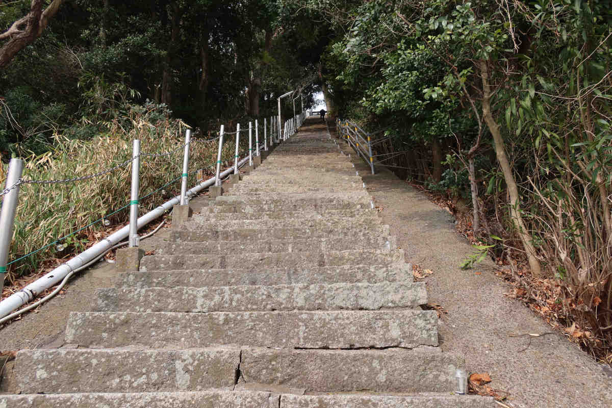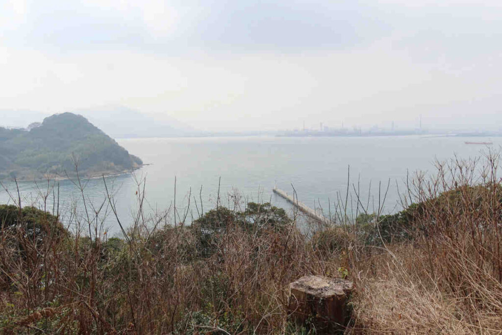 社殿の左側の方には、恐らく福浦金比羅公園に繋がっている道があって、ちょっと天気が悪くて靄ってましたが、九州とかまで見渡せました。