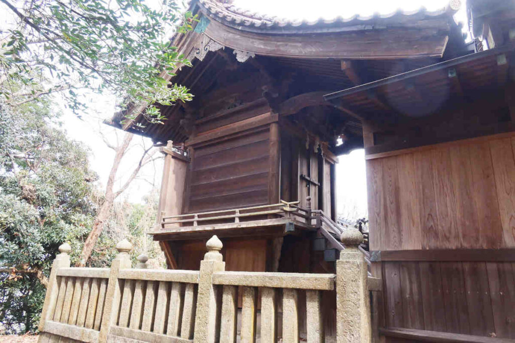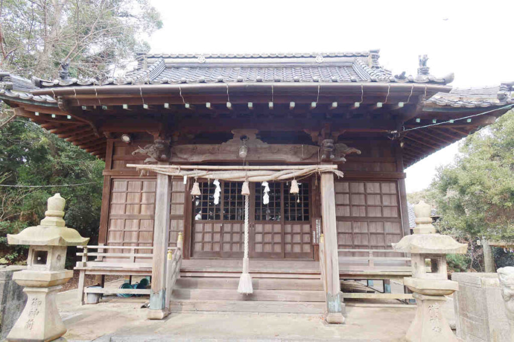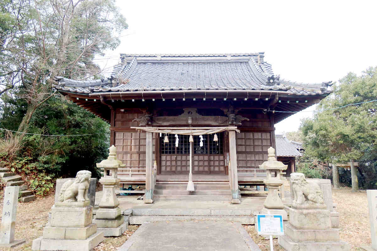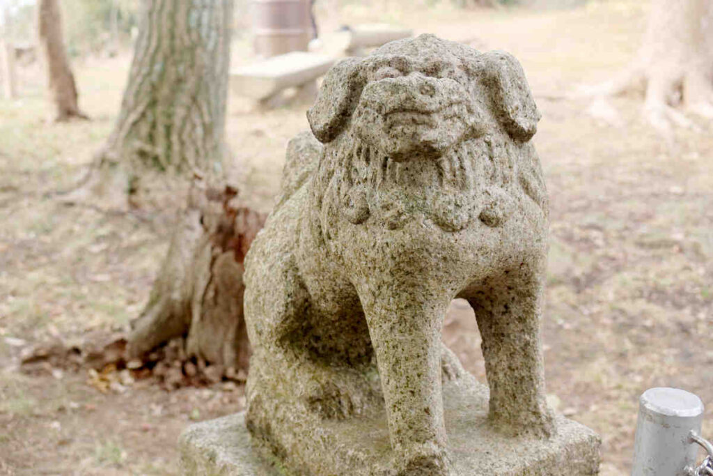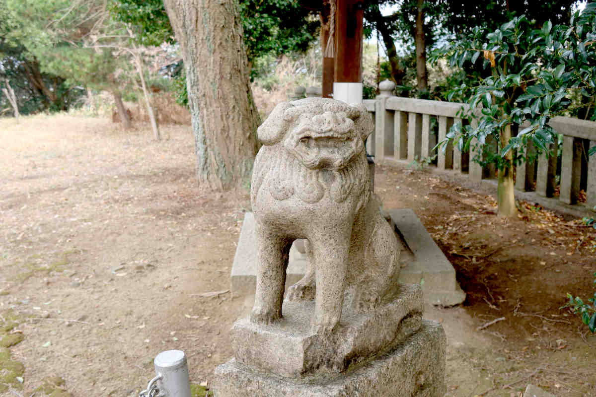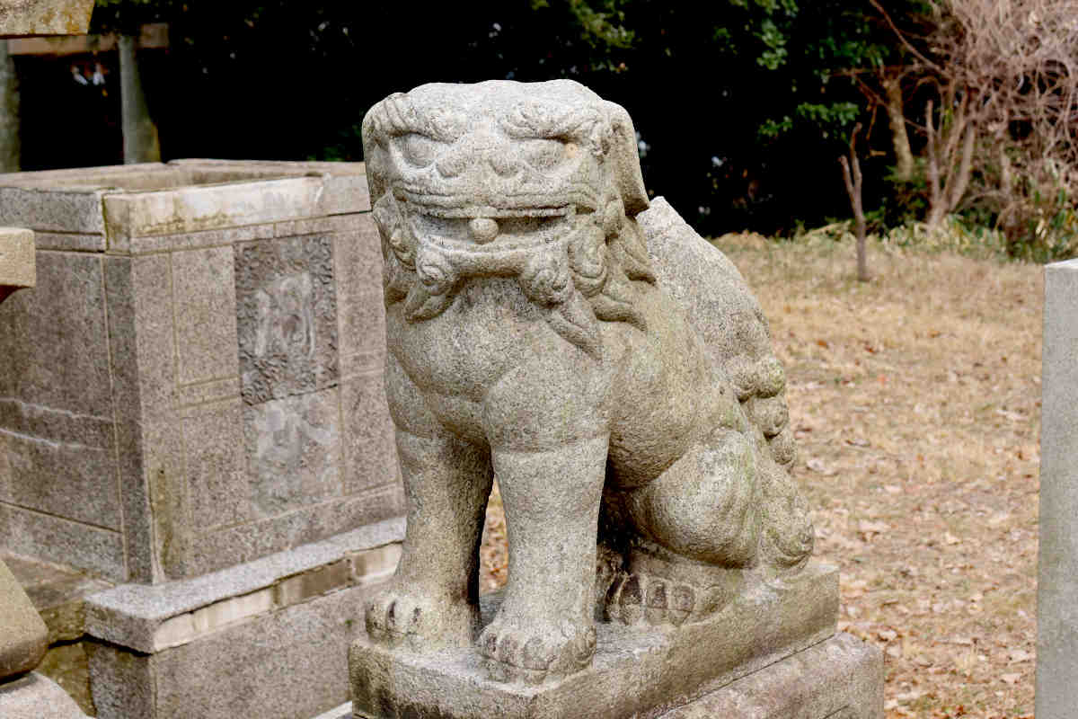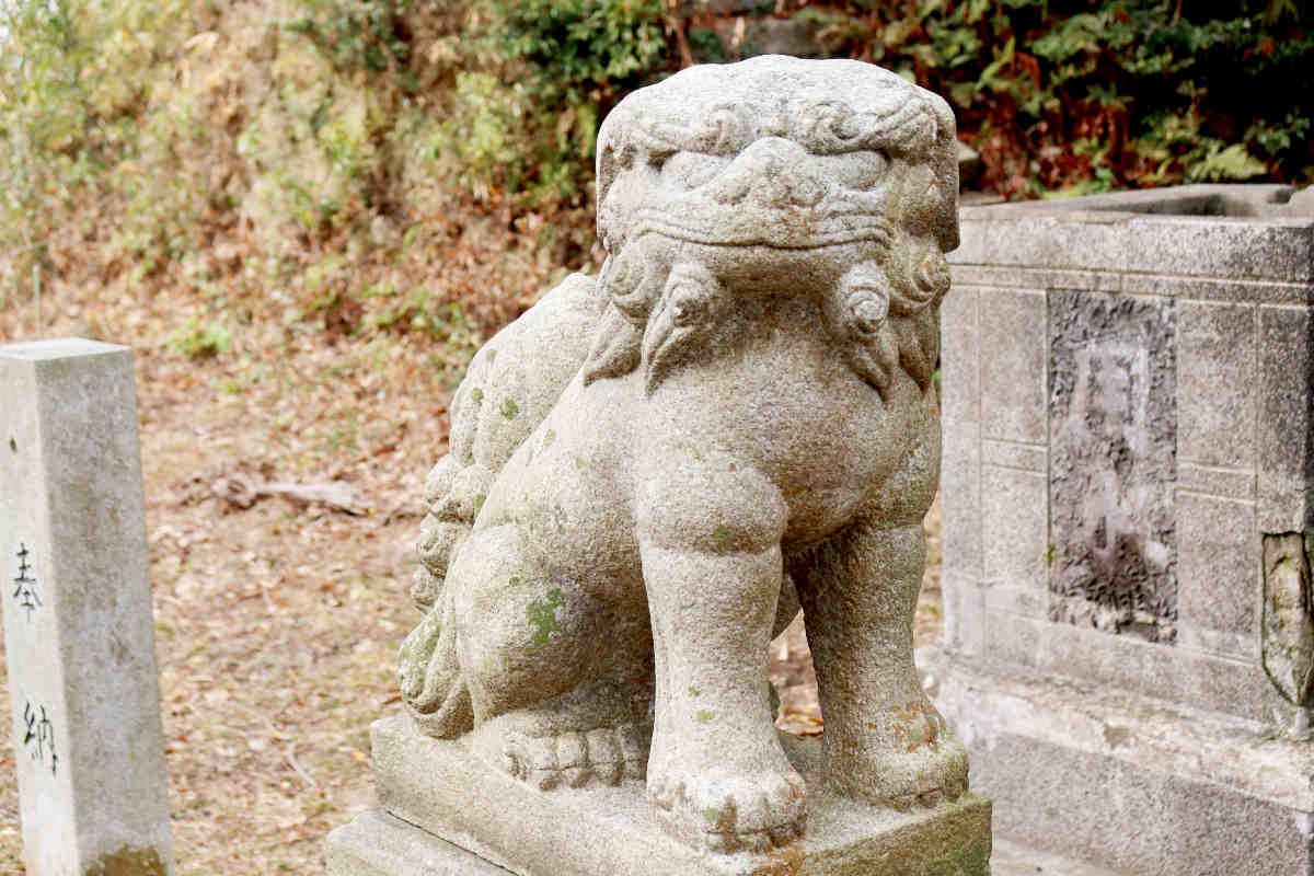 本当にしんどい(^^;)石段を登りきると、こちらも「金刀比羅社」の扁額を掲げた石鳥居と小さめの狛犬が出迎えてくれました。正面にはもう一対の狛犬と石灯篭がたっていて、その後ろに社殿がたっていました。小さ目な注連縄や木鼻の彫刻がある位で、余り飾り気が無く、色も焦げ茶系のみでシンプルな社殿でした。