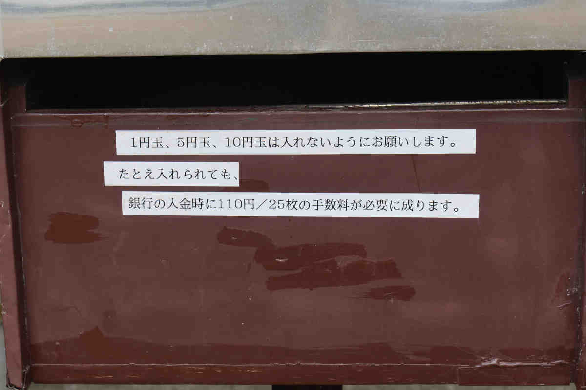 お賽銭箱には「1円玉、5円玉、10円玉は、入金時に銀行の手数料のが高くなるので入れないで下さい」と言った意味の注意書きがありました。今風ですね(^_^;)