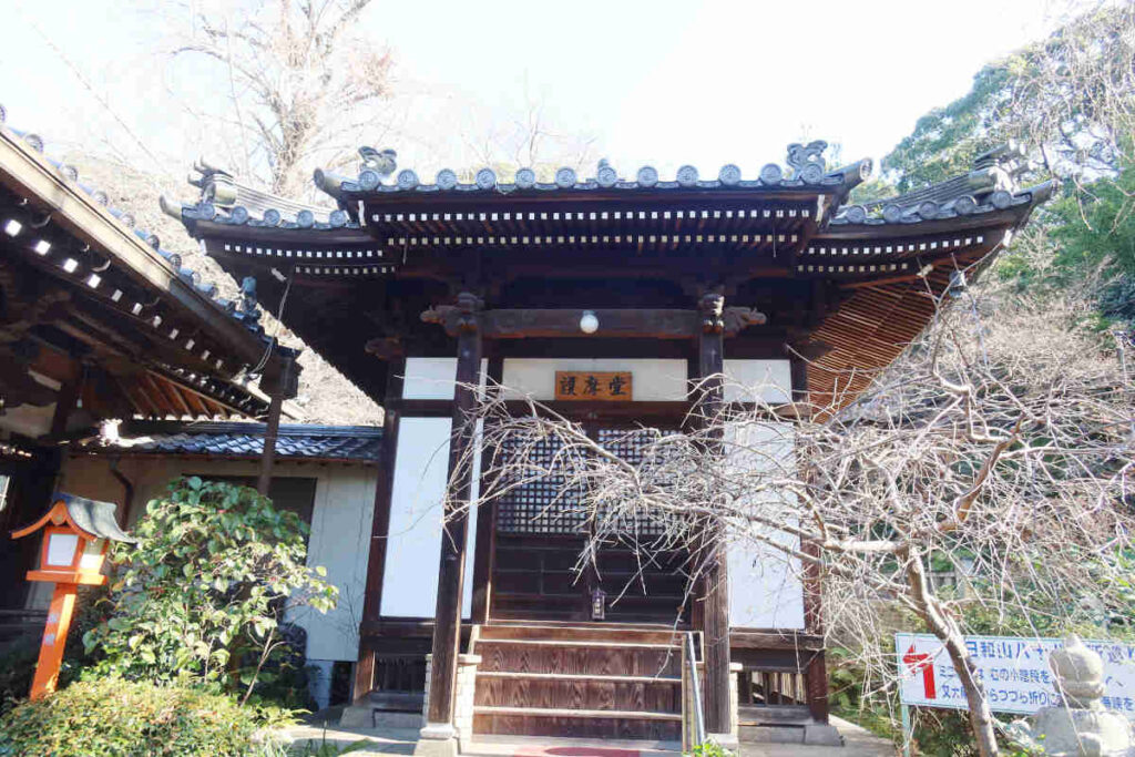 八十八番堂の少し奥の方に青緑っぽい屋根に朱と白の建物の奥の院が立っていました。平成18年に今の場所に新しく建てられたようです。奥の院の横からは日和山公園の方に行く道が出ていました。