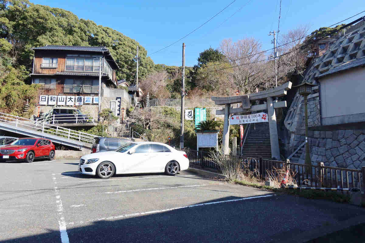 護摩堂の裏辺りから外に出ると目の前に紅葉稲荷神社、その左側から真っすぐ奥の院に向かう石段の道と日和山八十八カ所霊場への道がありました。