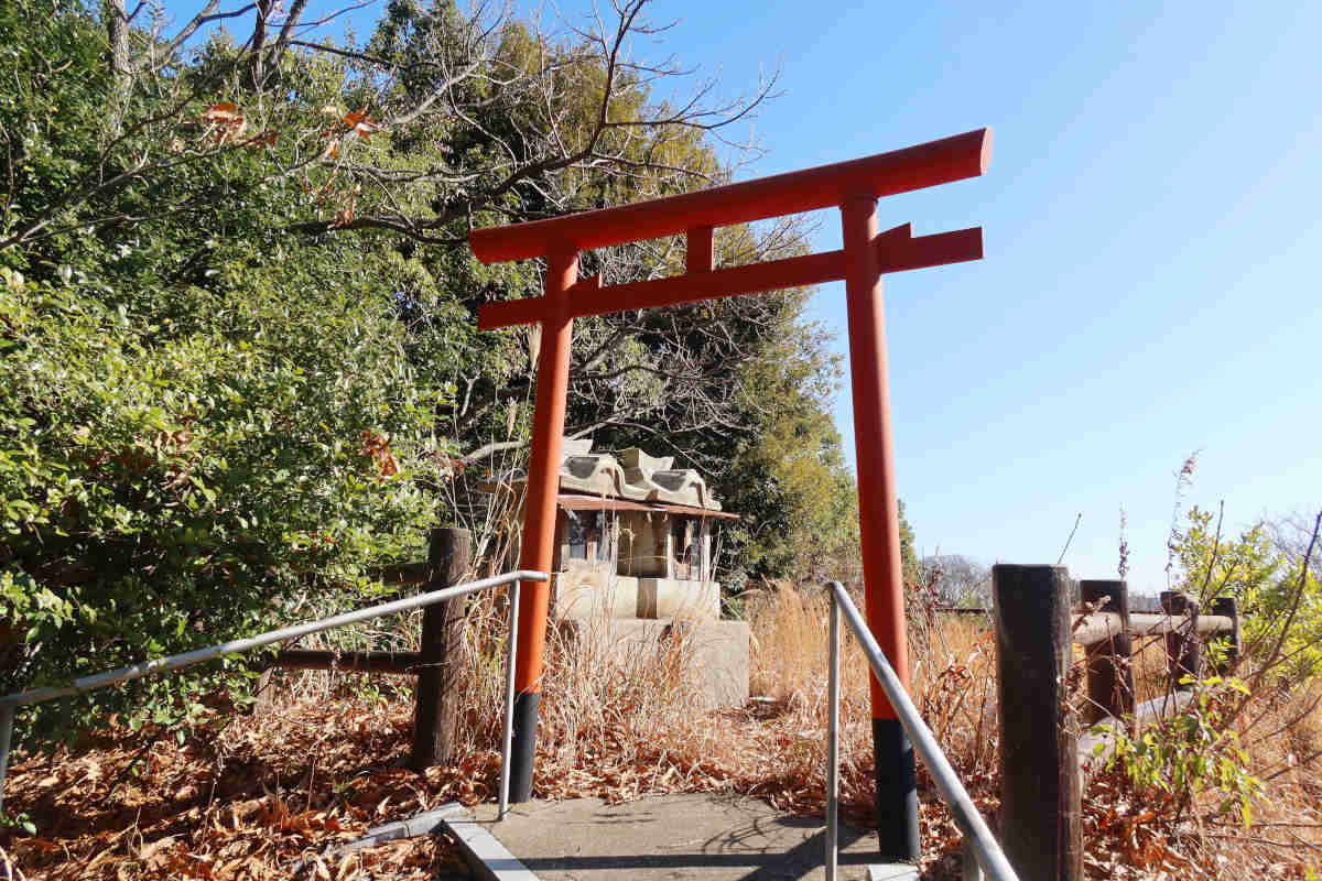 道すぐの所から左側に厄坂があり、登った先に赤鳥居と石の祠が2つ立っていました。名前の分かるものはありませんでした。祠の扉はガラスのようですが、大分汚れていて中は良く見えませんでした。よくよく覗き込んでギリギリ「・・大神」の字だけ見えました。後で福仙寺のHPで調べると稲荷社とのことでした。一応、此処が境内で一番高い所で、景色のいい展望台と言う事ですが、残念ながら、木々が生い茂っていて、余り展望は良くなかったです(^_^;)