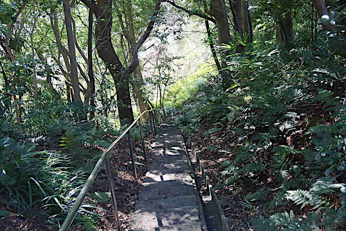 日和山八十八カ所霊場は、第一番・釈迦牟尼如来から第八十八番・薬師如来まで88のお堂が山の斜面を左右にジグザグの道に配置され、お参りしながら奥の院の方まで登って行きます。HP等では、ミニ八十八ヶ所札所という事で「四国」という言葉は出て来ないのですが、1番が霊山寺、88番が大窪寺となっているので、四国八十八ヶ所霊場のミニ版と考えて良いのではと思います。たぶん同等の御利益が(^_^)
