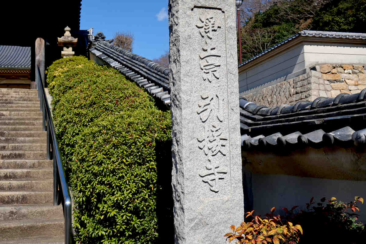 石段を登ると大きくて立派な三門がたっていました。1769年に再建されたもので戦禍を受けた引接寺の中でも戦禍を逃れたそうで、当初の構造形式を残しているそうです。門前の案内板によると「三門は四脚門の形式であり、屋根を本瓦葺きとし、両側に脇門を設け、柱を総円柱とする。門の内部を二手先の組物を使い、鏡天井とする稀な例」 との事です。
