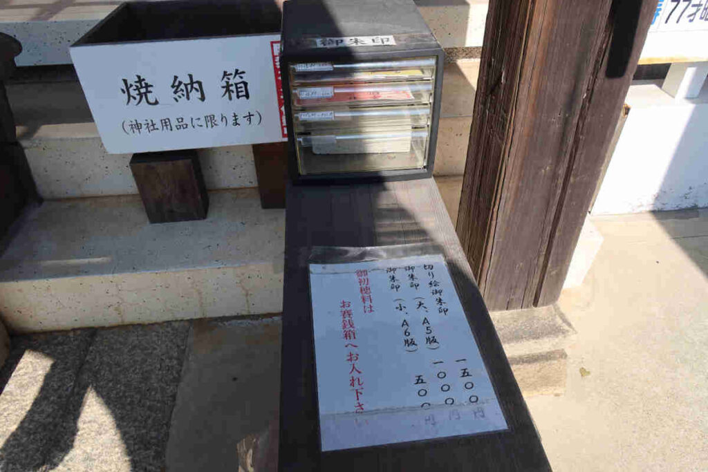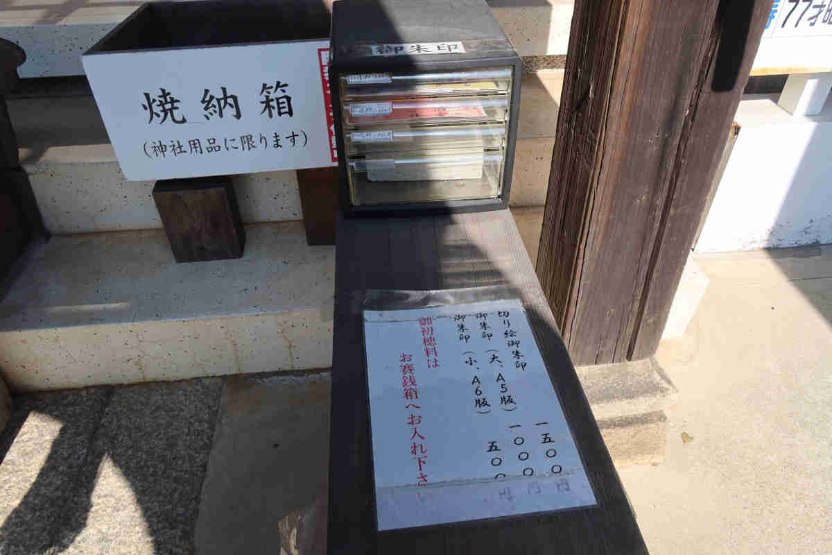 拝殿のお賽銭箱の右側に御朱印が入ったケースがありました。書置きタイプのみですが、今まで出したと思われる限定版の御朱印なども多くあり、古いバージョンの御朱印など多種類の御朱印がぎっしりと詰まっていました(^_^;)