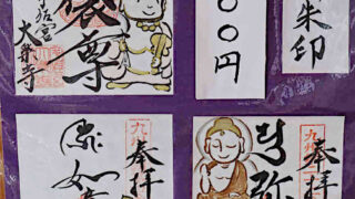 大分県 御朱印一覧表 大分県宇佐市 大分県 宇佐市医王山 大楽寺(だいらくじ) 本堂に入って左側に受付がありました。 御朱印は、通常タイプ3種類と仏画入りタイプが3種類ありました。御朱印を書く方と仏画を書く方は別のようで、仏画を書く方がお留守だったので通常タイプを頂きました... 2025.10.26 大分県御朱印帳御朱印帳 地区別